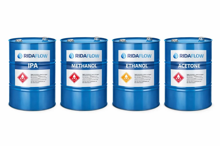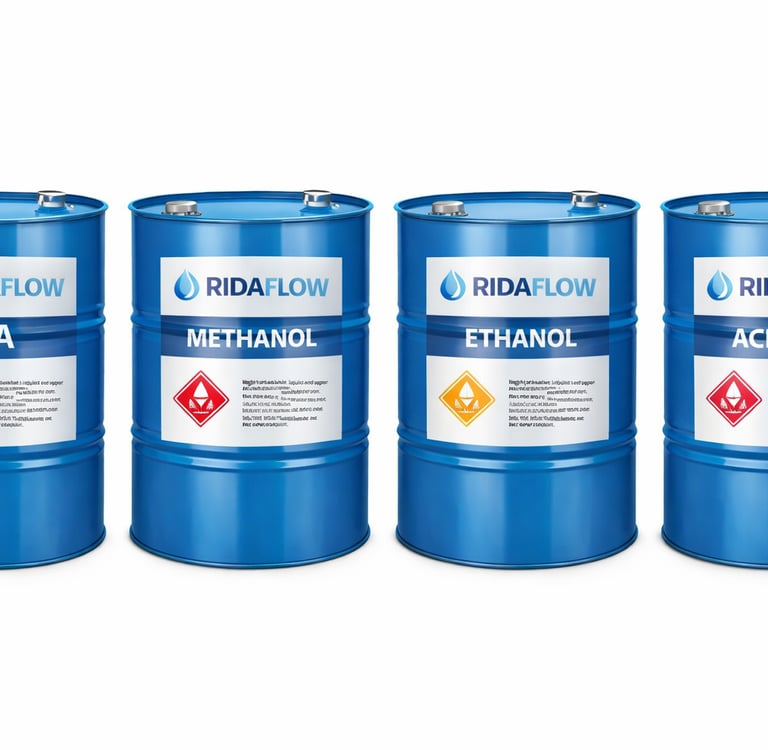 Ridaflow is a leading bulk distributor of high-purity solvents, including Bio-Ethanol, Methanol, and specialty chemicals. We provide the pharmaceutical, electronics, and energy industries with the consistent quality and reliable logistics needed to power large-scale production
